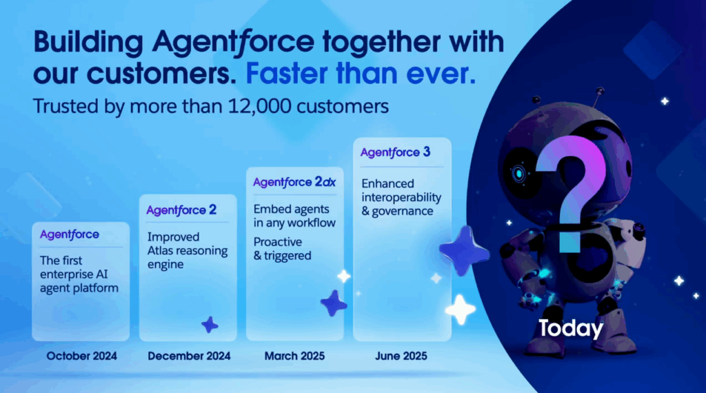 Salesforce introduced Agentforce 360 as the backbone of the Agentic Enterprise, a platform designed to integrate AI seamlessly into every part of the business. This next-generation solution addresses common pitfalls in enterprise AI adoption by combining: